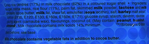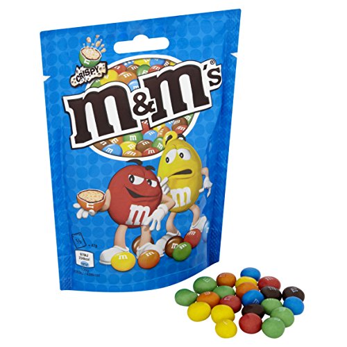 - M&M’s crispy are bite size pieces of smooth milk chocolate (62%) with a rice centre (17%) in a colourful sugar shell